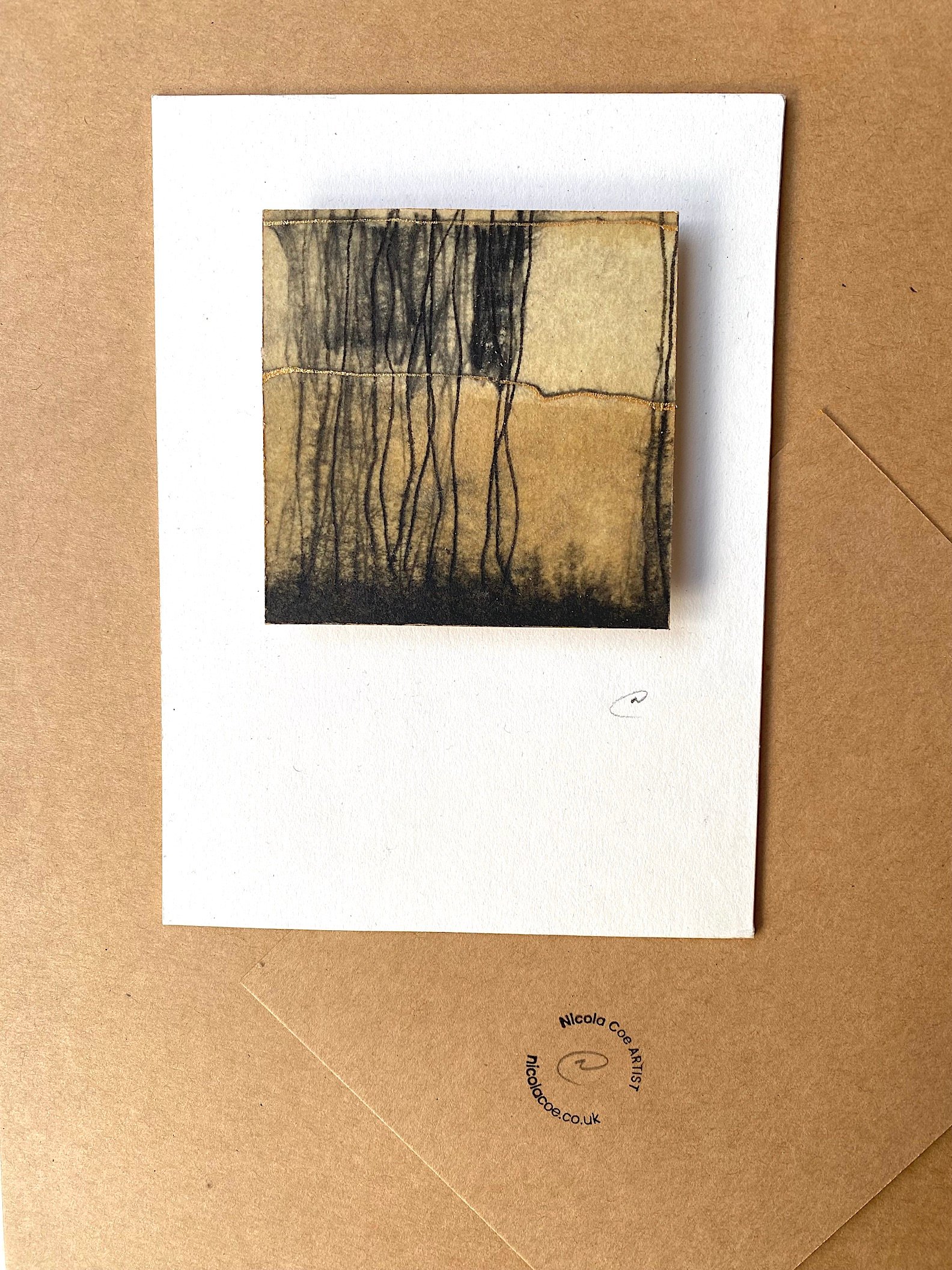 This artwork is 8cm square it is float mounted onto board which is and signed. Presented with a signed backing paper in a cellophane envelope.