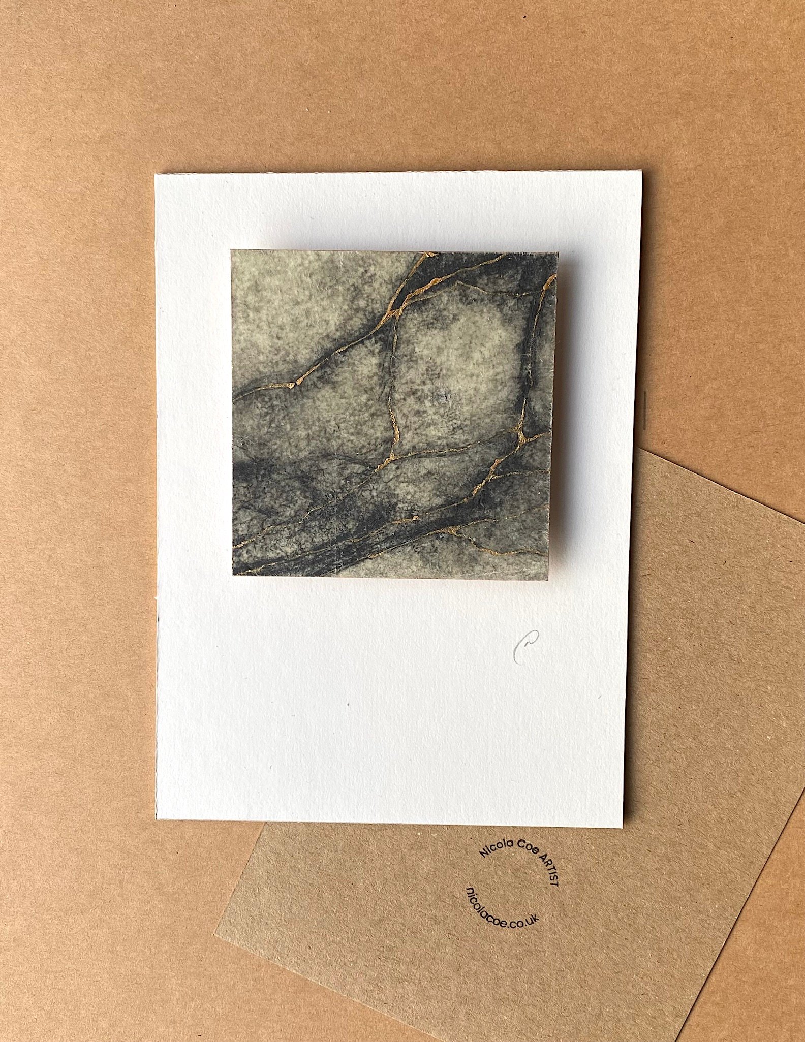 This artwork is just under 8cm by 8cm and is float mounted onto board measuring 16 cm by 11cm which is then signed. The whole artwork is presented with a signed backing paper in a cellophane envelope.