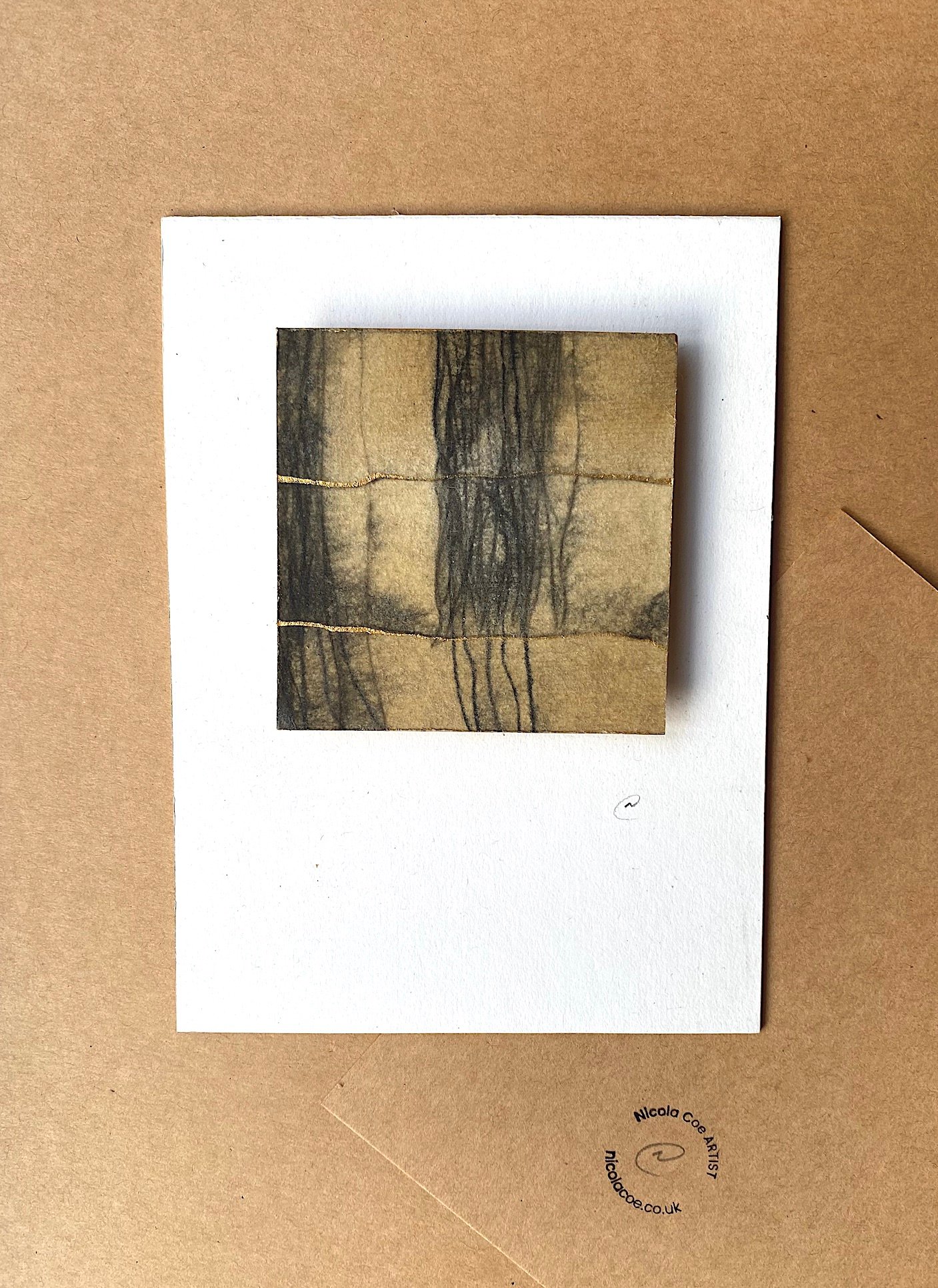 This artwork is 8cm square it is float mounted onto board which is and signed. Presented with a signed backing paper in a cellophane envelope.